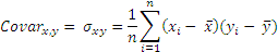 Note the similarity between the formula for covariance and variance. Variance is nothing but the covar of the variable with itself. Covariance is in the units of both the x variable and the y variable, therefore representing a number that is not intuitively understandable.