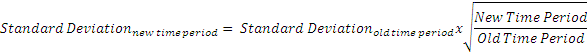 If we know the standard deviation for a given time period, say ‘old time period’ and need to convert it to a ‘new time period’, we can do so using the formula:
